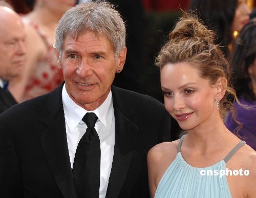 當(dāng)?shù)貢r(shí)間2月24日晚,第八十屆奧斯卡頒獎(jiǎng)典禮在好萊塢柯達(dá)劇場(chǎng)舉行。好萊塢明星哈里森·福特?cái)y女友出席頒獎(jiǎng)典禮。中新社發(fā) 張煒 攝