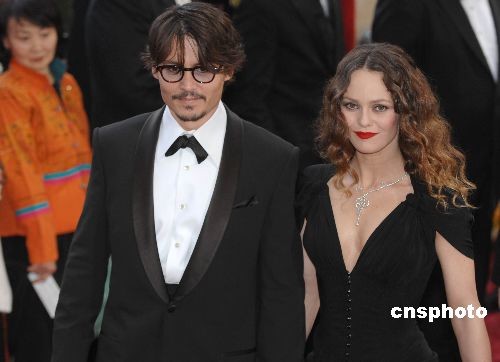 當?shù)貢r間2月24日晚,第八十屆奧斯卡頒獎典禮在好萊塢柯達劇場舉行。影帝提名人、《理發(fā)師陶德》主演約翰尼·德普未能如愿。圖為約翰尼·德普攜女友維尼莎·帕萊茲準備出席頒獎禮。中新社發(fā) 張煒 攝