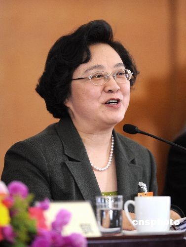 三月六日下午,全國政協(xié)十一屆一次會(huì)議記者招待會(huì)在北京人民大會(huì)堂新聞發(fā)布廳舉行,主題為“民主黨派中央主席談多黨合作”,中國八個(gè)民主黨派中央主席共同出席。圖為臺(tái)盟中央主席林文漪。中新社發(fā) 廖攀 攝