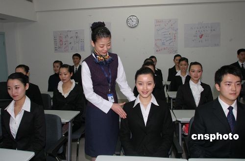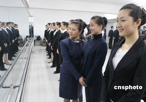3月18日,國(guó)航從“奧運(yùn)空乘”成都賽區(qū)選拔出的首批34名優(yōu)秀學(xué)員,集中在國(guó)航西南分公司成都乘務(wù)員培訓(xùn)中心開(kāi)始接受近三個(gè)月的乘務(wù)員初始培訓(xùn),培訓(xùn)成績(jī)優(yōu)異者將投入國(guó)航奧運(yùn)航線(xiàn)客艙服務(wù)。這批學(xué)員包括12名男學(xué)員、22名女學(xué)員,清一色為大專(zhuān)以上學(xué)歷,其中14人達(dá)到本科學(xué)歷,為乘務(wù)培訓(xùn)中心接收的學(xué)歷最高的一批乘務(wù)學(xué)員。中新社發(fā) 易世忠 攝