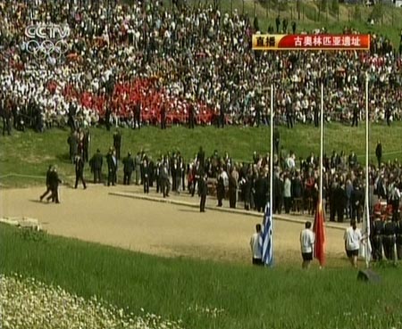當?shù)貢r間3月24日,北京奧運會圣火采火儀式即將拉開帷幕,中新社前方記者在希臘采火儀式前方發(fā)來報道。今天的奧林匹亞遺址天氣晴好,非常適合進行圣火采集。圖為奧運圣火采集儀式現(xiàn)場。