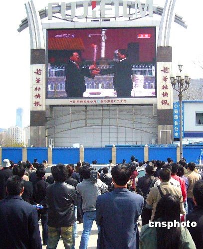 3月31日,北京站旅客在廣場大屏幕前觀看奧運(yùn)圣火傳遞直播。當(dāng)天,2008奧運(yùn)圣火啟動儀式在北京天安門廣場隆重舉行,胡錦濤主席親自點燃了北京奧運(yùn)會圣火,并宣布奧運(yùn)圣火傳遞正式啟動。北京站前廣場大屏幕直播的盛大場面,吸引了眾多旅客駐足觀看。 中新社發(fā) 玉龍 攝