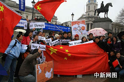 圖:倫敦特拉法加廣場上歡迎火炬的中國留學(xué)生(2)