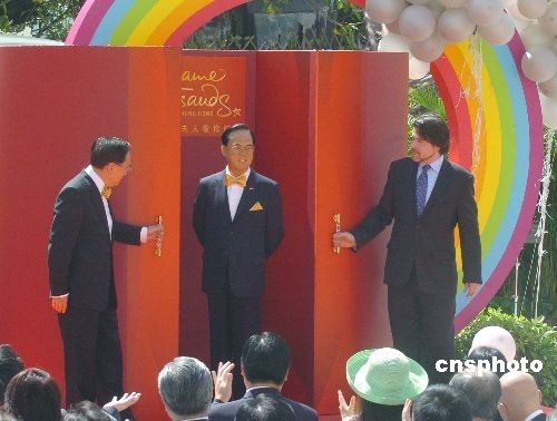 圖:香港特首曾蔭權(quán)主持自己蠟像揭幕儀式