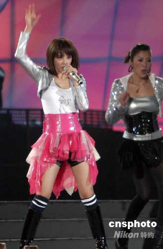 4月10日,在以“牡丹盛開迎奧運(yùn)”為主題的河南省第26屆洛陽牡丹花會(huì)慶典晚會(huì)上,臺(tái)灣人氣歌手蔡依林、潘瑋柏激情獻(xiàn)唱。中新社發(fā) 張曉理 攝