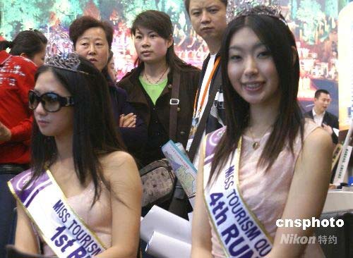 發(fā)表評論 四月十一日上午,二00八年中國國內(nèi)旅游交易會在河南省鄭州市開幕,來自海內(nèi)外的十萬余客商與會。參展商各展“絕活”,“古文化”、“秀美山水”等紛紛亮相,將旅交會裝扮得亮麗非凡,吸引海內(nèi)外眾多媒體。圖為二00八國際旅游小姐亮相旅交會。中新社發(fā) 史寶銀 攝