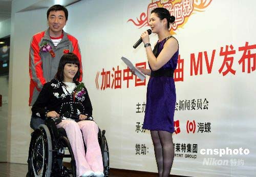 4月11日,奧運冠軍楊凌推著桑蘭登臺暢談錄制《加油中國》歌曲的心得。當(dāng)日,體育門戶網(wǎng)站華奧星空與華人唱片公司海蝶在北京發(fā)布“加油中國—唱響華人世界”系列活動主題歌《加油中國》。該歌曲由高敏、吉新鵬、雷聲、桑蘭、王海濱、王麗萍、刑傲偉、楊凌等八位體育明星共同錄制演唱。作者: 楊可佳