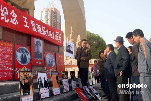 2008年4月11日是偉大的無產(chǎn)階級(jí)革命家、政治家、軍事家,原西北野戰(zhàn)軍第一兵團(tuán)司令員兼政委王震誕辰100周年紀(jì)念日。當(dāng)天,曾多次親耳聆聽過王震將軍教誨的退伍老兵、新疆庫爾勒市民陳伯壽,將自己精心收集整理的王震畫像等40多幅紀(jì)念圖板,擺放在人民廣場(chǎng)供廣大市民觀看接受教育,并以此種形式表達(dá)新疆庫爾勒老兵對(duì)王震將軍的一片緬懷思念之情。中新社發(fā) 吳寬宏 攝