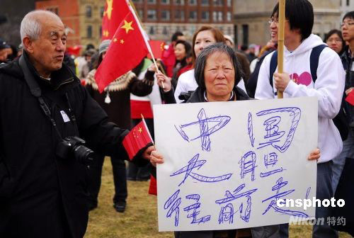 當?shù)貢r間2008年4月13日下午,來自加拿大各地的近萬名華人聚集在首都渥太華國會山廣場,舉行“宣傳西藏真相、維護祖國統(tǒng)一”大型集會活動。集會全程充滿“和平、友愛”的熱烈氣氛,組織者宣讀了中英文集會聲明和致加拿大總理哈珀公開信,表達海外華人“支持一個中國、支持北京奧運會,反對暴力”的心愿。中新社發(fā) 楊碩 攝