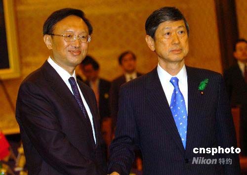 4月17日,中國外長楊潔篪抵達東京,與日本外相高村正彥商談胡錦濤主席下月訪日的具體事宜。高村正彥表示,日方期盼胡錦濤主席訪日取得圓滿成功。中新社發(fā) 朱沿華 攝