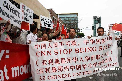 圖:華僑華人在洛杉磯CNN大樓前抗議(2)