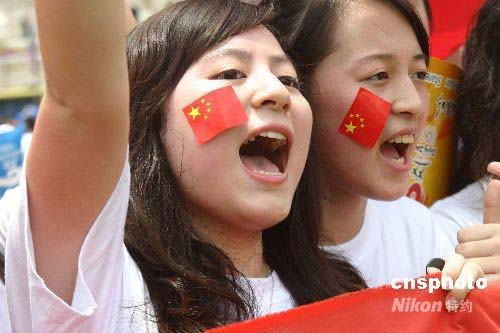 圖:中國留學(xué)生在吉隆坡為奧運(yùn)圣火助威