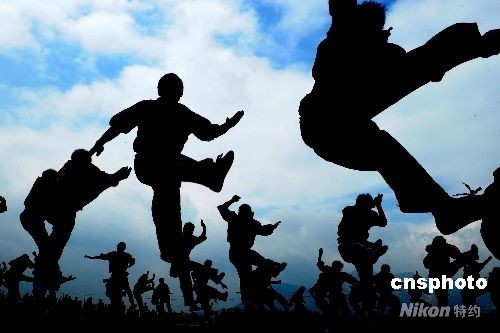 4月下旬,河南登封塔溝武校的練武少年在勤練武功。在聞名海內(nèi)外的河南省登封市少林寺周圍,每天都有數(shù)萬人在習(xí)武,練武林中的絕活,他們用精湛武藝展示飛檐走壁、童子功、氣功等。中新社發(fā) 高山岳 攝