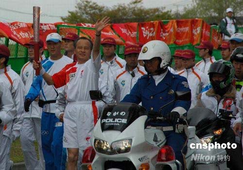 4月26日,北京奧運(yùn)圣火在日本長野傳遞的過程中受到中國在日華僑華人、留學(xué)生以及長野市民的熱烈歡迎。圖為中國駐日本大使崔天凱手持火炬向歡呼的人群并揮致敬。中新社發(fā) 關(guān)妍 攝