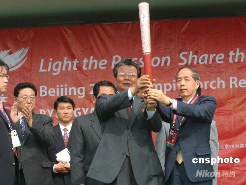 組圖:北京奧運(yùn)圣火在朝鮮平壤傳遞(9)