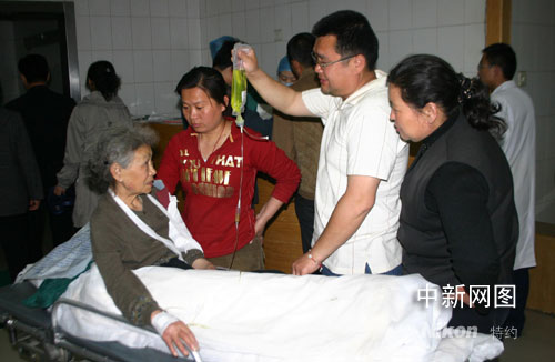 八十多歲的程玉華是此次事故受傷乘客,據(jù)介紹,她從淄博火車站乘坐煙臺到徐州的五0三四次列車,上車不久就發(fā)生了事故。圖為左臂骨折正在當(dāng)?shù)蒯t(yī)院手術(shù)室外等待手術(shù)治療的程玉華老人。胡洪林 攝