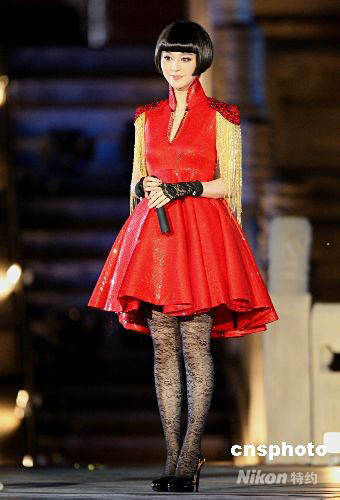 范冰冰現(xiàn)場獻(xiàn)歌。中新社發(fā) 趙振清 攝
