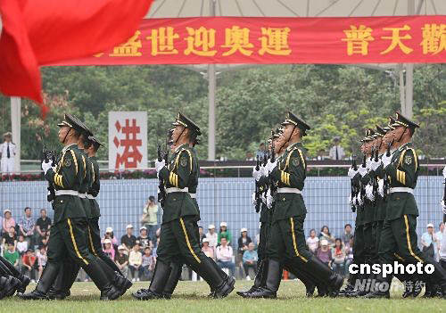 圖為市民在昂船洲軍營觀看槍械團體操表演。中新社發(fā) 武仲林 攝