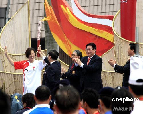 當地時間五月二日十點半,2008北京奧運圣火中國境內首站香港傳遞正式開始。中新社發(fā) 王麗南 攝