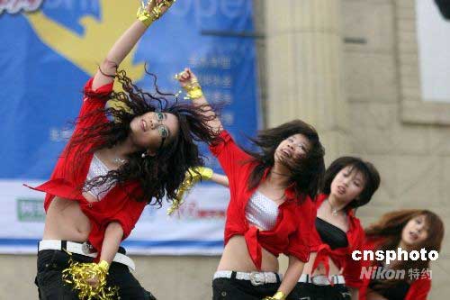 2008年“五一”期間, 2008“中網(wǎng)·網(wǎng)動中國”網(wǎng)球拉拉隊(duì)團(tuán)體復(fù)賽在北京歡樂谷舉行。來自北京十幾所高校的拉拉隊(duì)選手參加了比賽,進(jìn)入前三名的選手將取得2008中國網(wǎng)球公開賽拉拉隊(duì)的資格。中新社發(fā) 陳曉根 攝