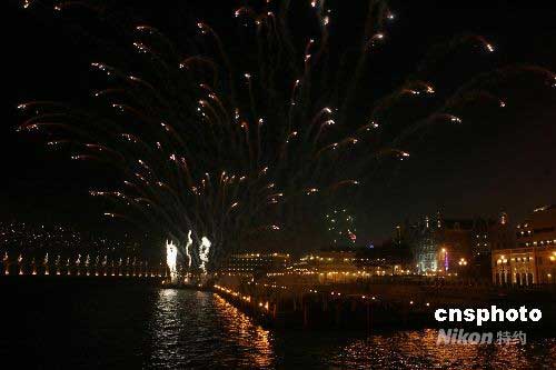 圖:澳門舉行煙花匯演慶祝奧運火炬?zhèn)鬟f(2)