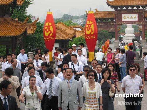圖:中國(guó)國(guó)民黨榮譽(yù)主席連戰(zhàn)參觀武漢黃鶴樓