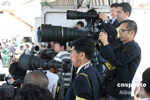 數(shù)百名中日及國際媒體記者到機(jī)場采訪胡主席抵達(dá)。中新社發(fā) 齊彬 攝