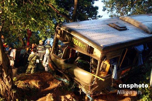 5月8日凌晨5時許,重慶主城一公交車墜橋沖下護坡,致車上14人受傷,其中10重傷,4人輕傷。據(jù)稱,事故車輛為牌號渝A25732的702路公交車,事故發(fā)生時,該車輛正由渝中區(qū)駛往江北區(qū)方向,途徑嘉陵江大橋北橋頭時,沖下10米高的護坡。事故公交車線路是由重慶市朝天門駛往沙坪壩區(qū),途中不經(jīng)過江北區(qū),該車輛屬于跨線運營。中新社發(fā) 郭晉嘉 攝