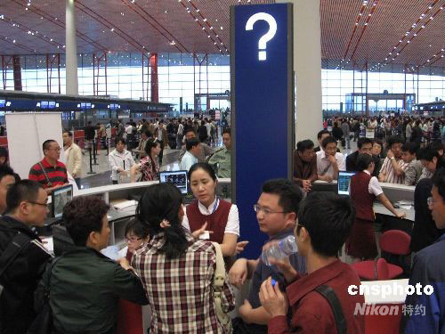 地震造成航線停中斷 首都機(jī)場(chǎng)三號(hào)航站樓問(wèn)訊忙