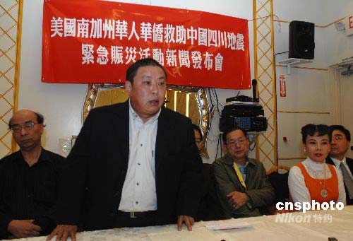 當(dāng)?shù)貢r間5月12日,美國南加州主要華人華僑團(tuán)體向僑界發(fā)出緊急賑災(zāi)倡議,呼吁華人華僑向四川汶川大地震災(zāi)區(qū)踴躍捐獻(xiàn)。中新社發(fā) 張煒 攝