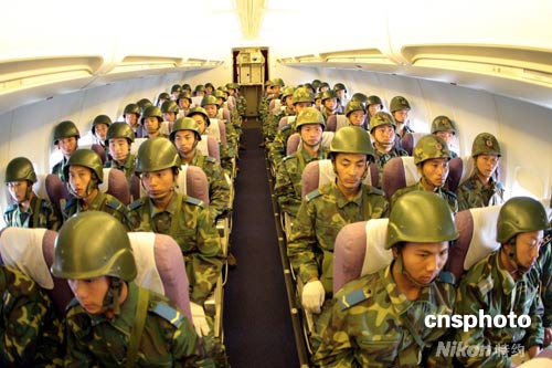 救災(zāi)官兵乘飛機飛赴災(zāi)區(qū)。譚 超 張雷 攝影報道