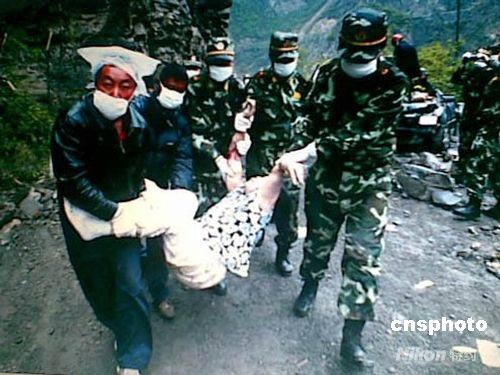 5月12日四川汶川發(fā)生7.8級(jí)地震后,武警重慶總隊(duì)黨委積極組織官兵投入抗震救災(zāi)工作當(dāng)中,在四川、重慶兩地展開(kāi)救援保障工作。5月13日7時(shí)45分,趕赴汶川地震核心區(qū)域的該總隊(duì)500名官兵,途徑茂縣沙塆村疊海風(fēng)景區(qū)時(shí)看到,因地震和大雨造成山石松動(dòng),山上滾下來(lái)的石塊將一輛小轎車(chē)和一輛從成都到九寨溝的大客車(chē)砸中并掩埋,總隊(duì)官兵當(dāng)即就地展開(kāi)救援工作。中新社發(fā) 周中余 攝