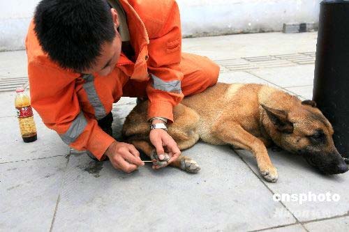 組圖:搜救犬負(fù)傷接受治療(3)