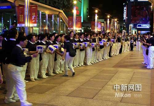 十月十七日晚,慈濟臺北分會在臺北市忠孝東路崇光百貨店門口發(fā)起為四川震災(zāi),緬甸風(fēng)災(zāi)募款行動。有二百多名義工參加。 作 者:陳立宇