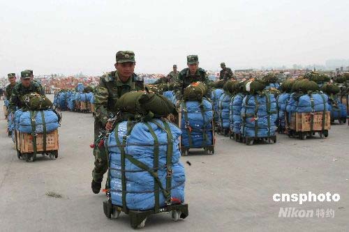 圖:中國空軍向四川災(zāi)區(qū)空投帳篷成功