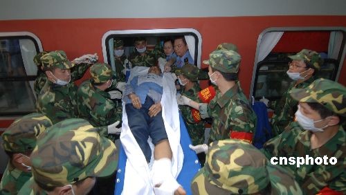 2008年5月19日,按照鐵道部的統(tǒng)一部署,成都鐵路局開行首趟運(yùn)送地震災(zāi)區(qū)受傷群眾專列,19日1O:20從綿陽(yáng)發(fā)車,當(dāng)日16:57到達(dá)重慶北站。運(yùn)送了206名地震受傷群眾及家屬前往重慶接受治療。該次專列專列車次為57005/6/5次路用傷員列車,編組19輛,全部為25G空調(diào)硬臥車。其中硬臥15輛并配備餐車及行李車。