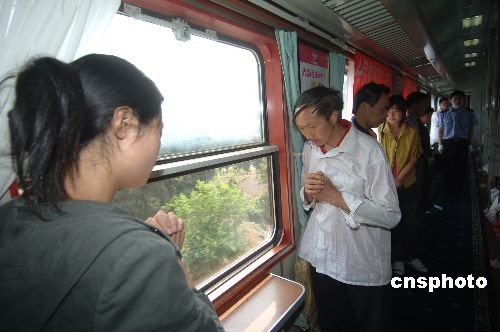 組圖:地震災(zāi)區(qū)首趟運(yùn)送傷員專列順利抵達(dá)重慶(8)