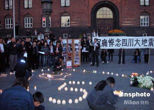 哥本哈根時間五月二十一日晚,丹麥華人總會在哥本哈根市政府廣場為四川大地震遇難同胞舉行燭光追思會。旅居丹麥的華僑華人和學(xué)者近五百人參加了此次燭光追思會。中新社發(fā) 葉利宗 攝