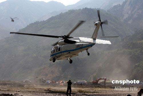 5月19日,中國空軍繼續(xù)高密度對四川省汶川大地震核心重災區(qū)映秀鎮(zhèn)空運救災物資與部隊急需的飲用水等給養(yǎng)。中新社發(fā) 任晨鳴 攝