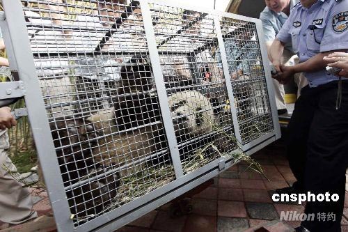 八只來自四川災(zāi)區(qū)的奧運(yùn)大熊貓平安抵京