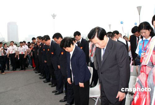 圖:圣火南京傳遞 群眾向地震遇難者默哀
