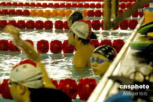 圖為四川省游泳隊隊員在河南鄭州進行緊張的訓練,全力備戰(zhàn)北京奧運會。中新社發(fā) 史寶銀 攝