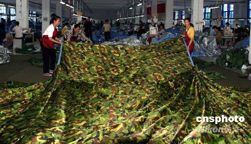 5月28日,揚(yáng)州舉行萬頂帳篷發(fā)往災(zāi)區(qū)的發(fā)車儀式。圖為中國最大的戶外帳篷生產(chǎn)企業(yè)江蘇阿珂姆野營用品公司生產(chǎn)車間,目前正承擔(dān)著民政部下達(dá)的12萬頂救災(zāi)帳篷生產(chǎn)任務(wù)。連日來,3500名員工在全力以赴加班加點(diǎn)生產(chǎn)帳篷,日產(chǎn)帳篷可達(dá)5000頂左右,5月30日后日產(chǎn)量預(yù)計(jì)可達(dá)6000頂以上。6月20日前,完成民政部下達(dá)的救災(zāi)帳篷生產(chǎn)任務(wù)。中新社發(fā) 崔佳明 攝