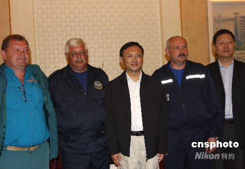 5月30日,中國外交部部長楊潔篪前往成都市錦江賓館會見俄羅斯醫(yī)療隊(duì),高度贊揚(yáng)了他們對災(zāi)區(qū)民眾的關(guān)心和國際人道主義精神。中新社發(fā) 黃榮 攝