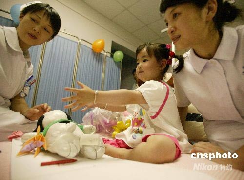“小馨懿”來了!這個曾被四川北川廢墟壓了40多個小時,溫總理為她讓路、江蘇省醫(yī)生為她截肢的3歲女孩,頑強地昭示著人間的愛與感動。5月31日晚,她乘飛機抵達南京,入住江蘇省人民醫(yī)院,繼續(xù)接受治療。中新社發(fā) 吳俊 攝