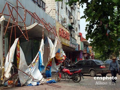 枝江城區(qū)遭受風(fēng)災(zāi),部分電線桿被刮倒,枝江全城停電。中新社發(fā) 劉君鳳 攝