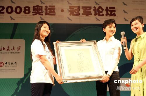 圖:楊瀾接受北京大學(xué)贈送的“楊瀾畫像”