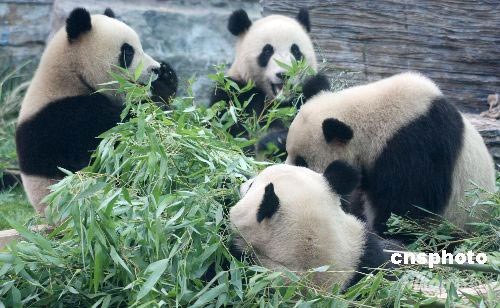 2008年6月5日,北京動物園熊貓新館正式開放。從四川臥龍來到北京的八只熊貓當日在新館正式亮相,吸引了許多市民前來觀看。中新社發(fā) 吳芒子 攝