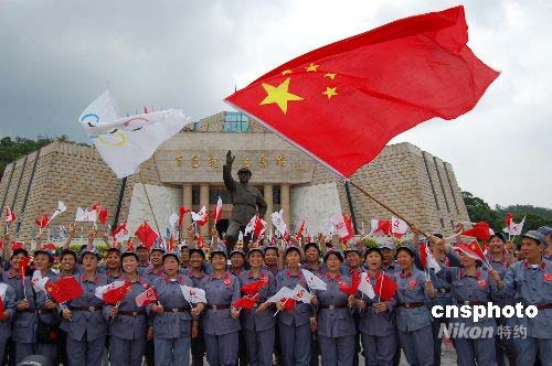 6月8日下午,奧運(yùn)圣火在廣西百色市傳遞,當(dāng)?shù)孛癖娫诎偕鹆x紀(jì)念館高舉國旗和五環(huán)旗歡迎圣火。百色是鄧小平軍事生涯的起點(diǎn),一九二九年鄧小平在百色領(lǐng)導(dǎo)發(fā)動(dòng)了著名的百色起義。中新社發(fā) 劉萬強(qiáng) 攝