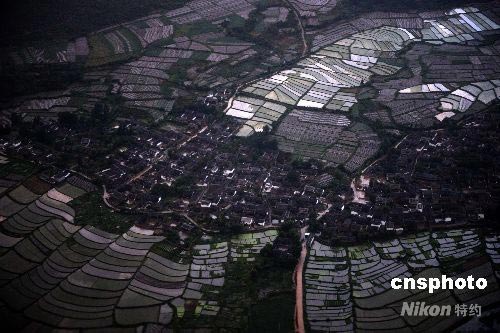 6月10日,奧運圣火將在云南麗江進行傳遞。6月9日,從飛機上俯瞰麗江風(fēng)光如畫。 中新社發(fā) 廖攀 攝